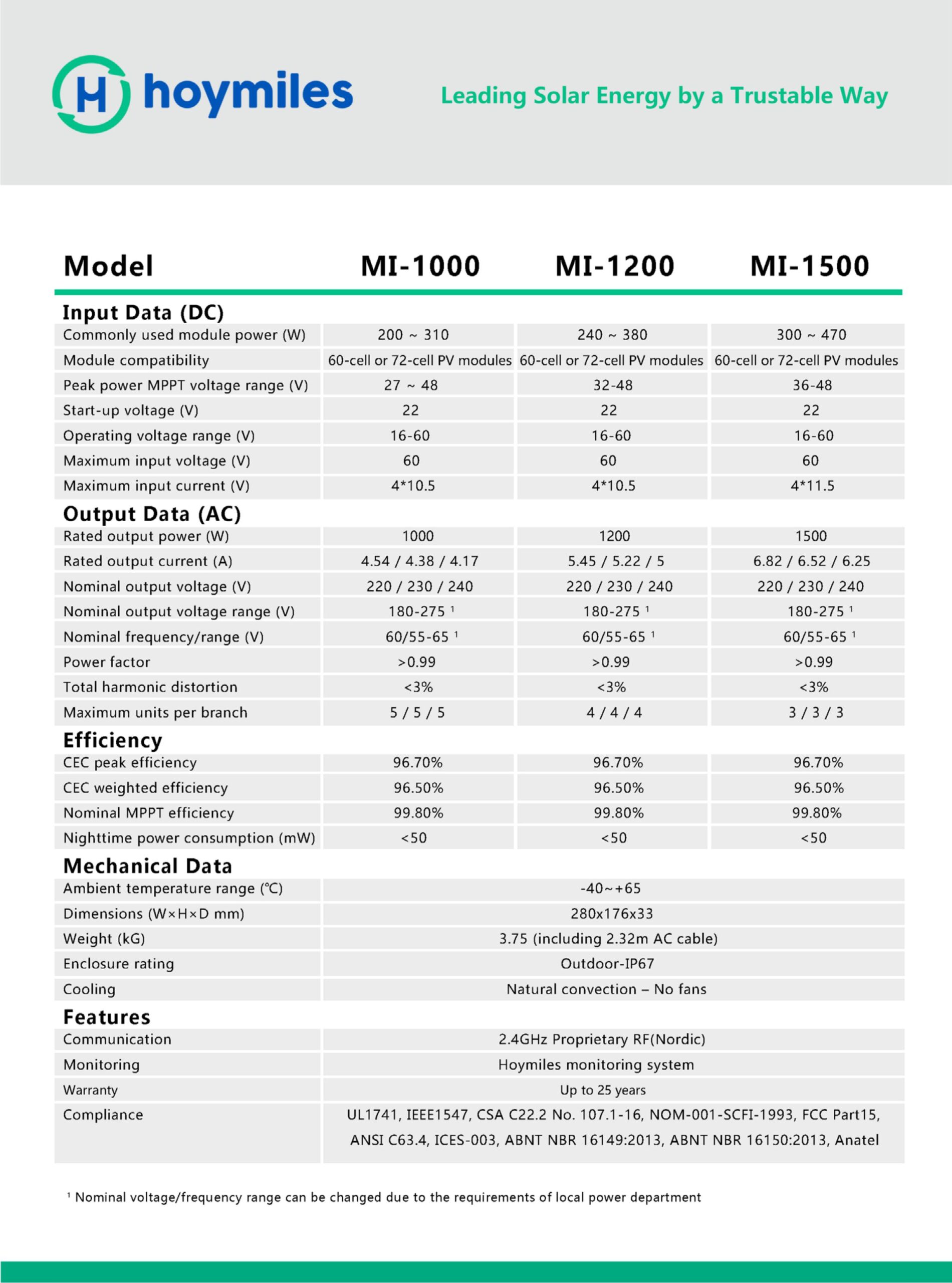 HOYMILES MI1000/1200/1500 MICRO INVERSOR
