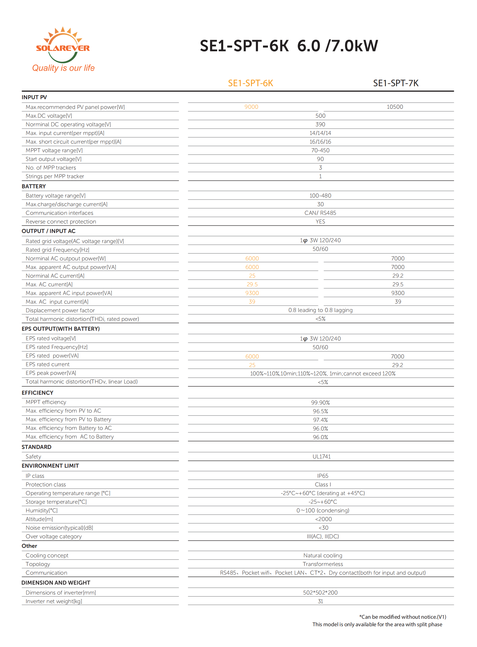 SOLAREVER INVERSOR DE HÍBRIDO(SE1-SPT-6K)