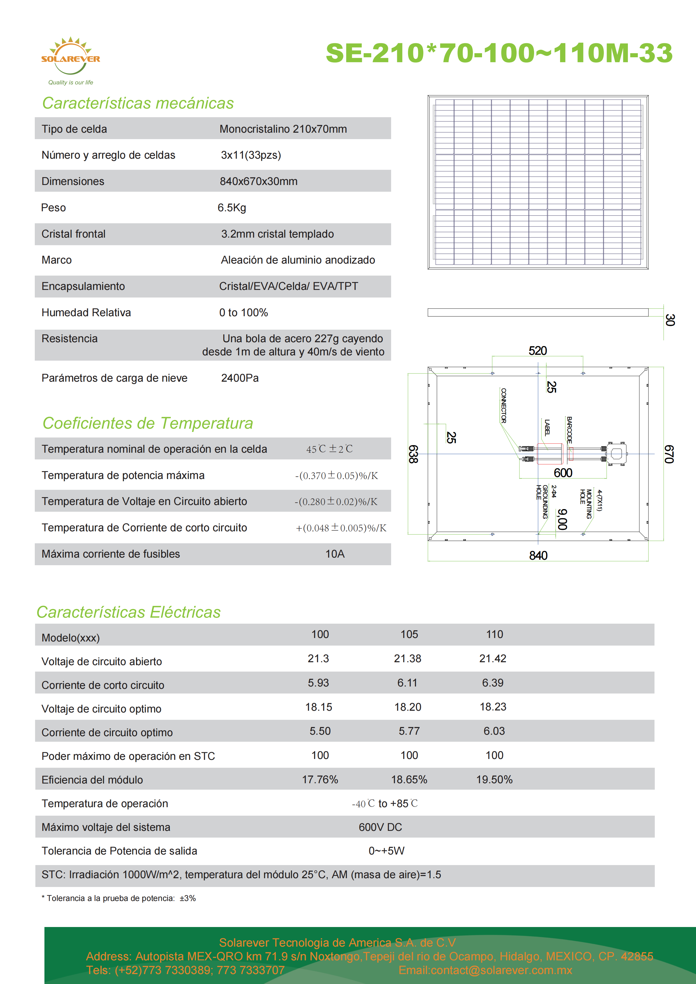 SOLAREVER MONOCRISTALINO 110W PANEL SOLARE