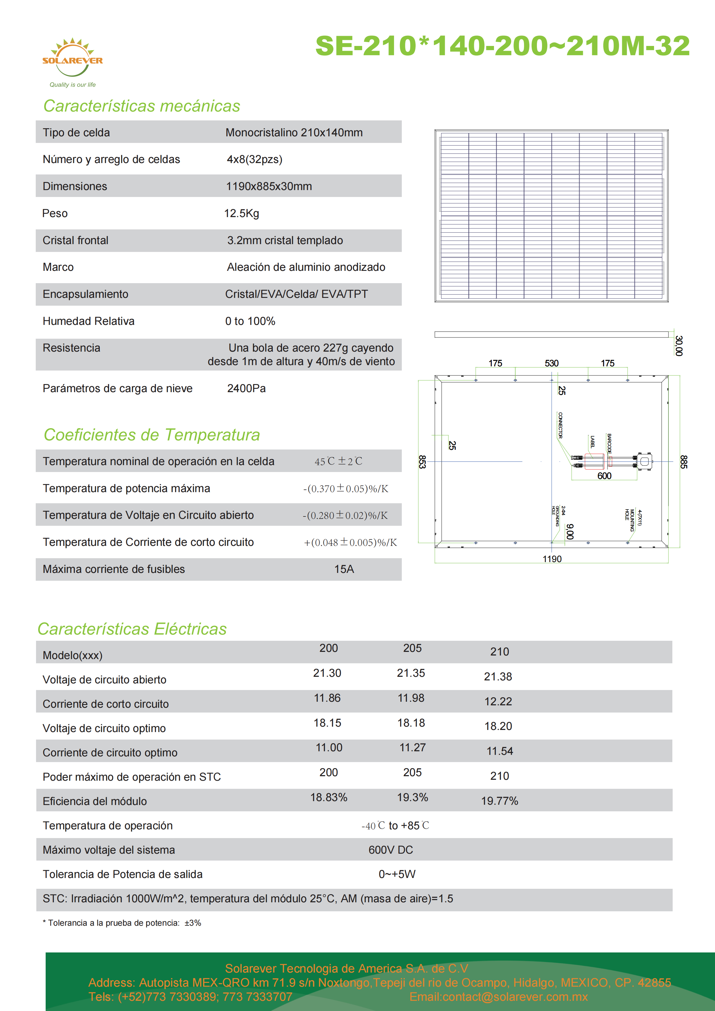 SOLAREVER MONOCRISTALINO 210W PANEL SOLARE